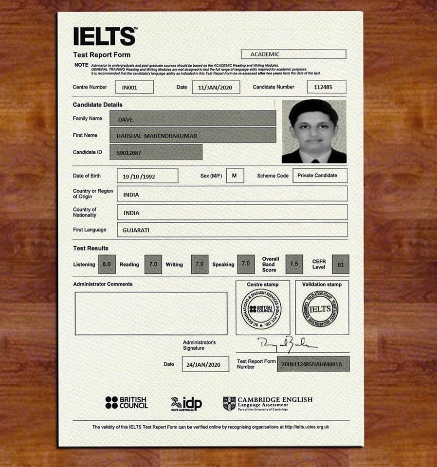 IELTS Certificate – Premium Replica with Authentic Band Score Design